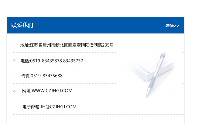 地址:常州市新北區友邦商務大廈1幢16、17層  電話:0519-85101652  傳真:0519-85112595  郵編:213022  網址:www.cz-jiayue_cn.exposmile.com  郵箱:xiajifengaa@163.com